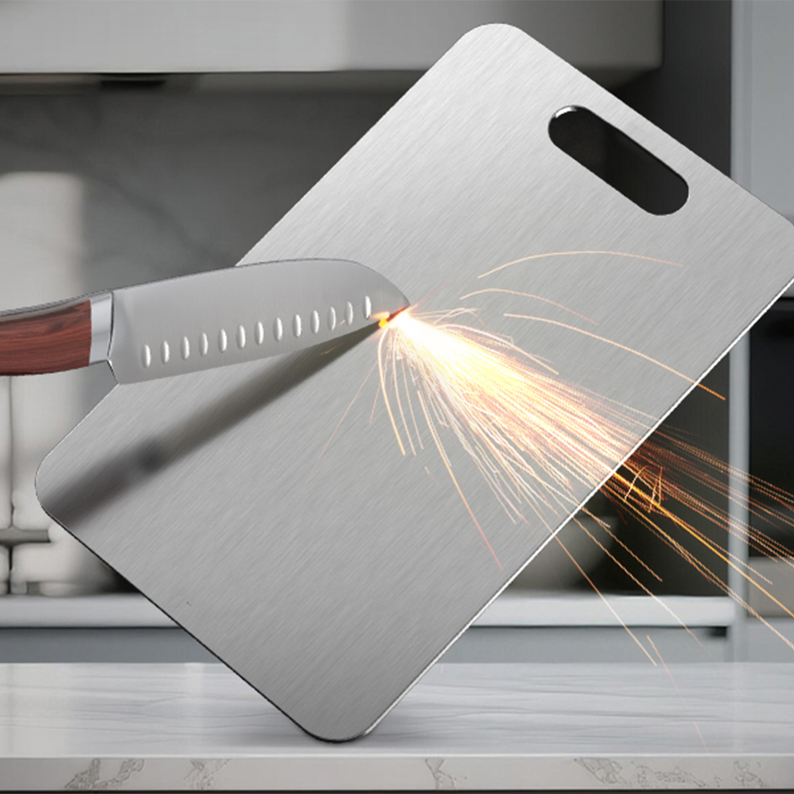Ehdottomasti! Titaanipinta on kolme kertaa pehmeämpää kuin teräs, joten se on hellävaraisempi veitsen terille kuin monet perinteiset leikkuulaudat.